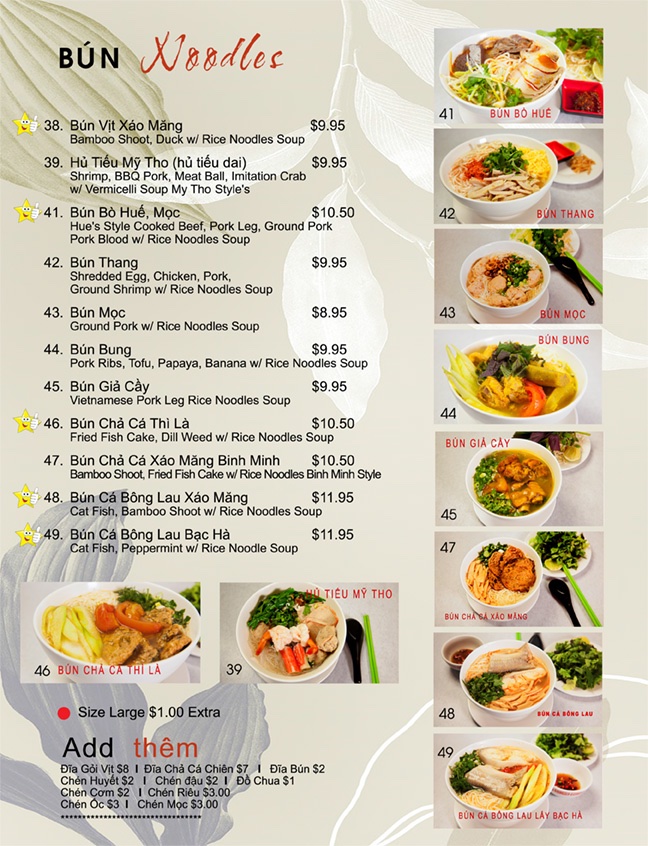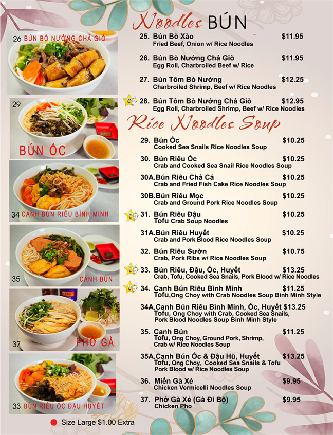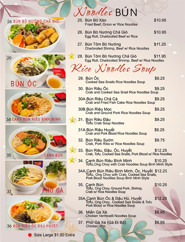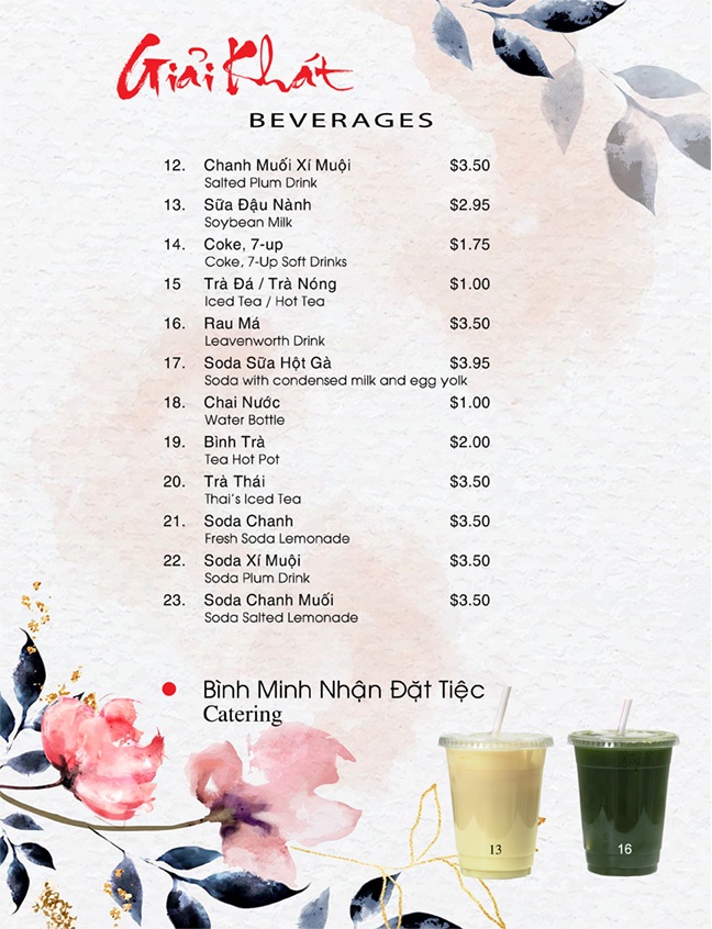 If you’re ready to dive into a menu that balances tradition and flavor, the Bình Minh Restaurant Menu is a great place to start. From the moment you flip through it, you’ll notice the vibrant mix of classic Vietnamese dishes paired with modern twists that keep things exciting. Each section is inviting, whether you’re eyeing fresh spring rolls that burst with herbs and crunch or a steaming bowl of pho that smells like pure comfort in a bowl. The appetizers lead naturally into heartier entrees, where tender meats, perfectly cooked seafood, and rich, aromatic broths show the care behind every recipe. Don’t overlook the sides and small plates either-they add texture and flavor that elevate the main dishes effortlessly. Drinks and desserts are thoughtfully placed, offering refreshing or indulgent finishes to round out the experience. Overall, browsing this menu feels like wandering through a lively Vietnamese market: colorful, aromatic, and full of little surprises at every turn, making it hard to pick just one favorite.